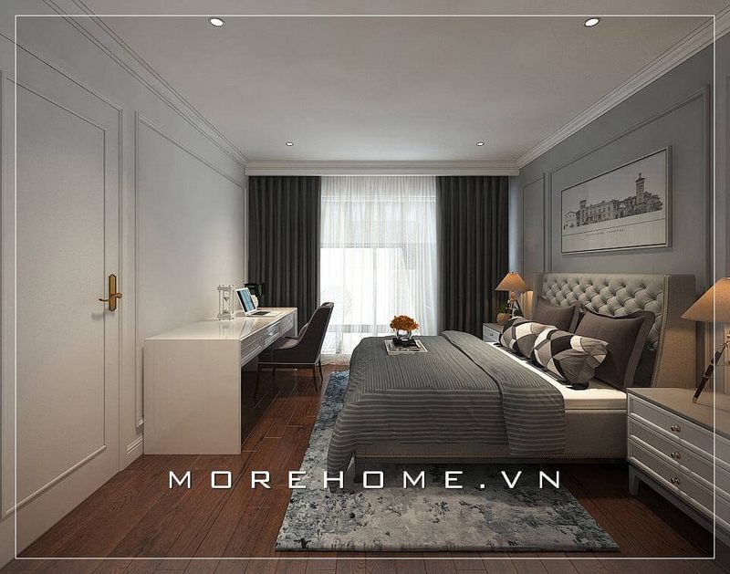 Nhờ sự bố trí khéo léo và khoa học, không gian phòng ngủ nhỏ tân cổ điển vẫn tạo được cảm giác thông thoáng và rộng rãi hơn