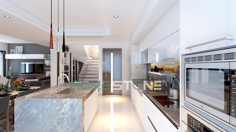 Nhiều mẫu đá bàn bếp đẹp sang trọng tông màu ghi xám vân mây vừa trẻ trung vừa sáng tạo.