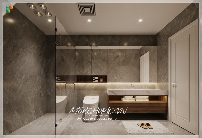 Được phân chia ngăn cách bằng cửa kính phòng tắm đứng tránh văng nước sang các khu vực khác trong phòng tắm