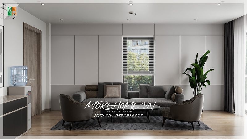 Bộ bàn ghế sofa bọc nỉ màu xám hiện đại phòng giám đốc sang trọng, êm ái mang đến cảm giác thoải mái và dễ chịu khi sử dụng. Tone màu trầm bộ sofa giúp không gian phòng thêm sang trọng và lịch sự.