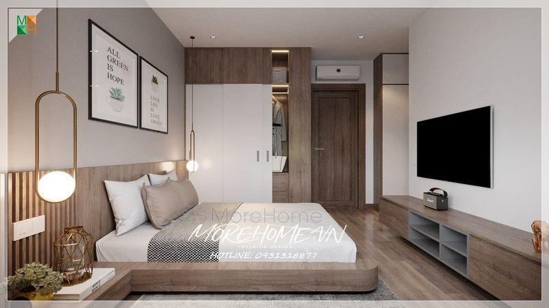 Tone màu nâu trầm ấm áp được áp dụng trong thiết kế phòng ngủ Master giúp tạo ra một không gian thoải mái và dễ chịu cho gia chủ.